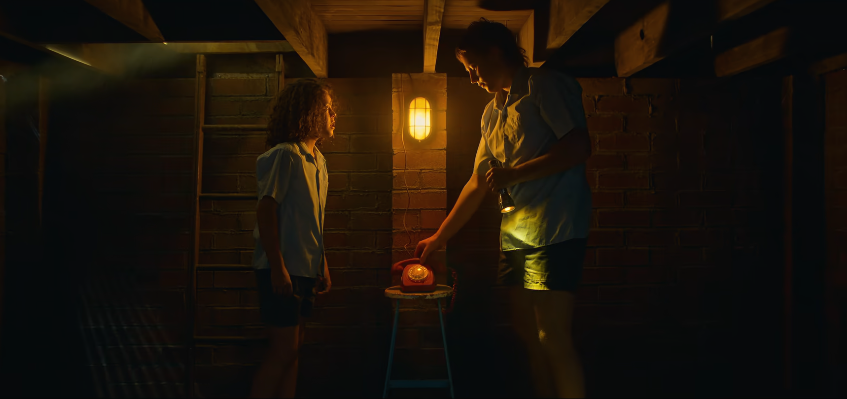 지하실에서 밝지 않는 조명이 비치는 빨간 전화기... 전화기를 들고 통화하는 사람은 일라이와 거스 두 형제뿐이다.